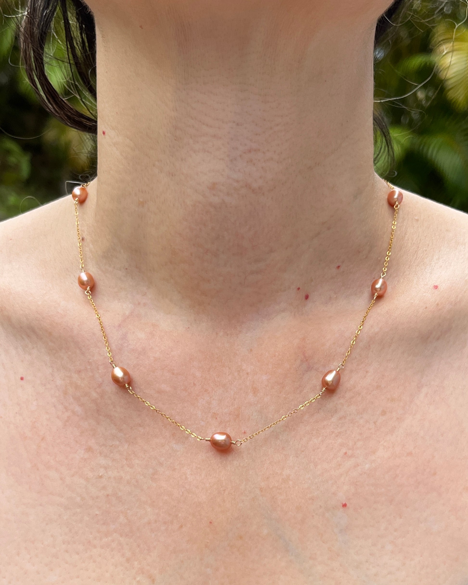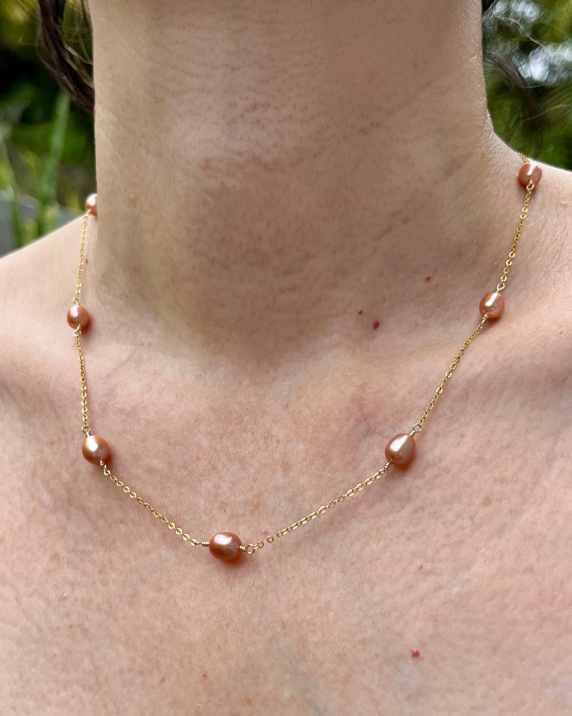 Elegant pink freshwater pearl station necklace. Easy to dress up or down.