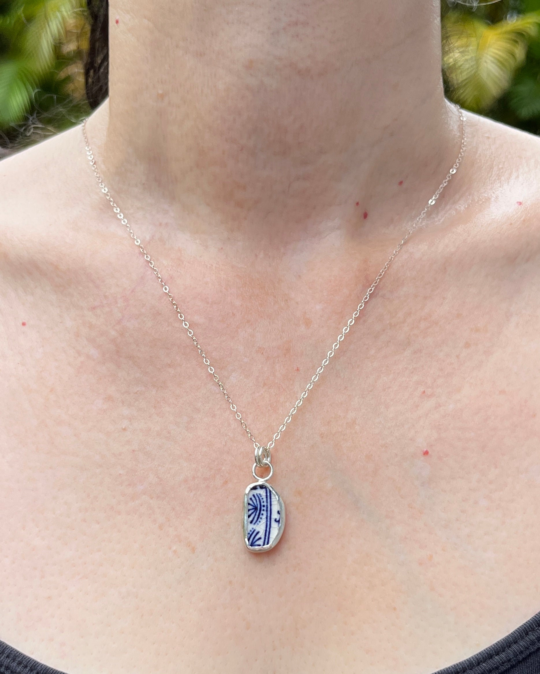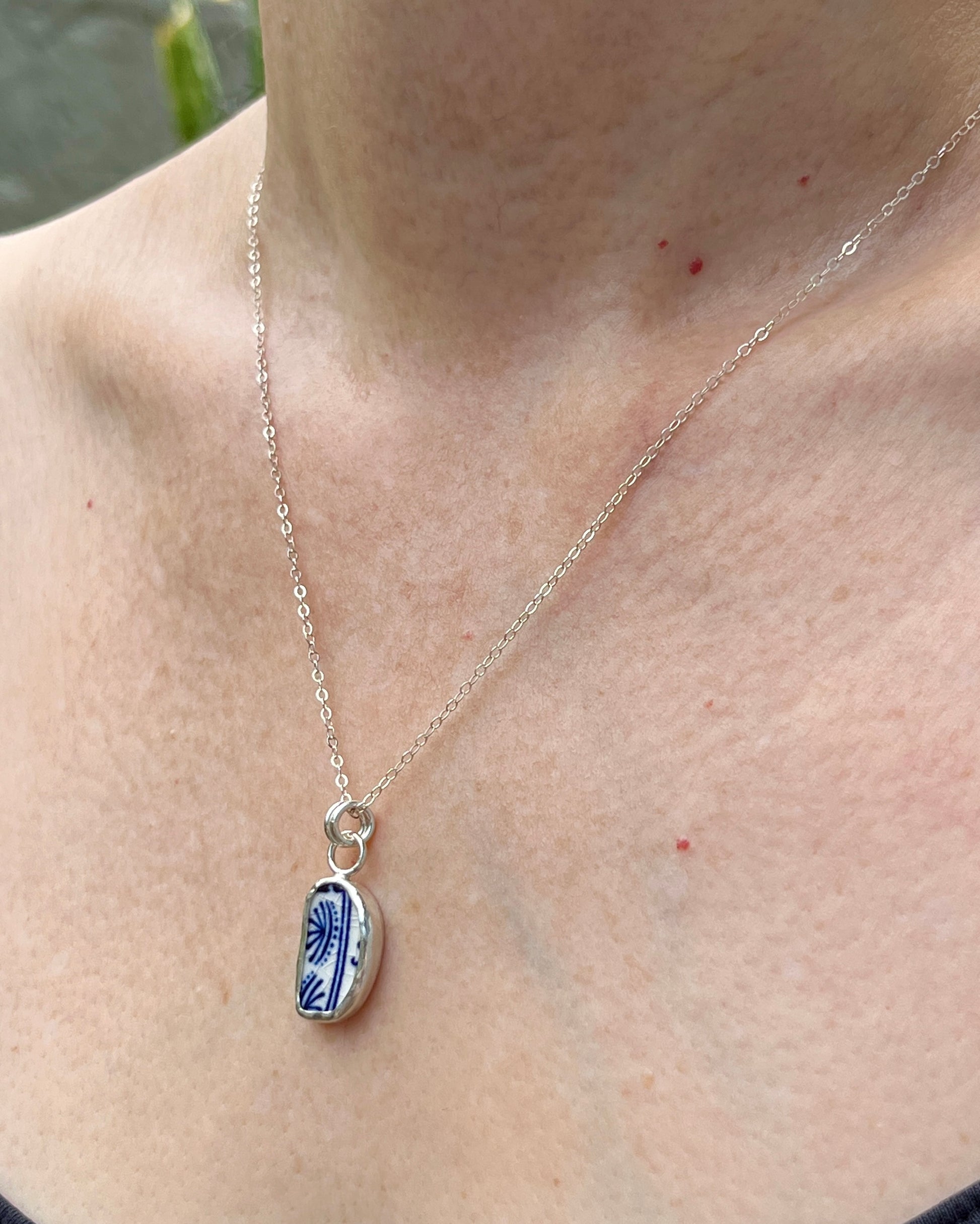 Upcycled vintage pottery bezel necklace. Handmade from sterling silver. All pottery pieces are 1 of 1.